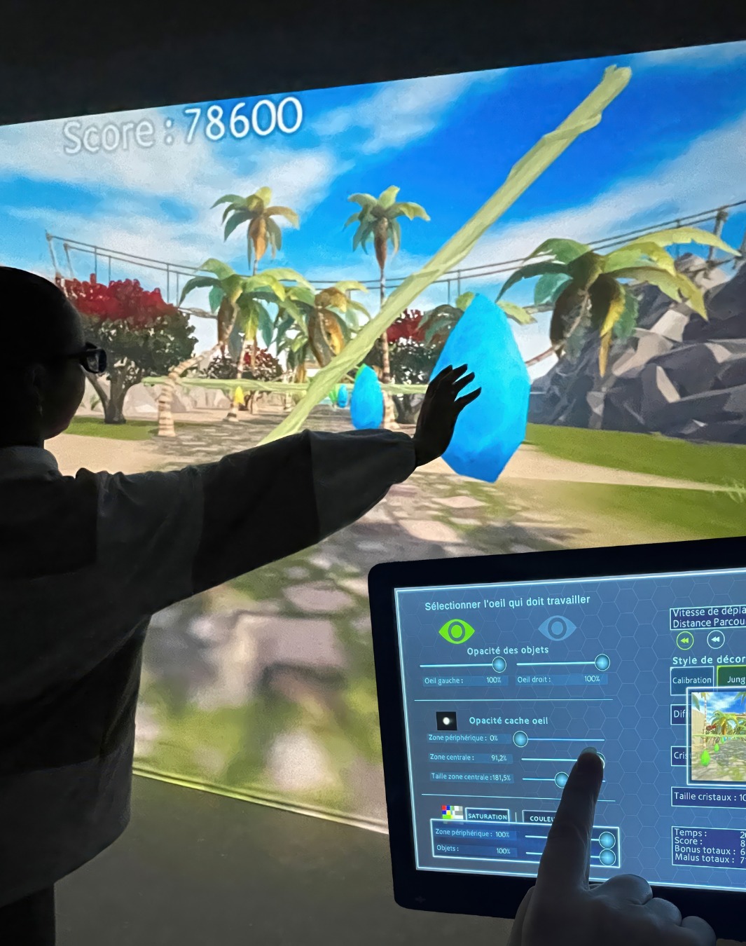 Pensée pour les orthoptistes, psychomotriciens et ergothérapeutes, cette solution permet d’analyser et de stimuler les mouvements oculaires, la posture et la coordination œil-main dans un environnement immersif, sécurisé et personnalisable.